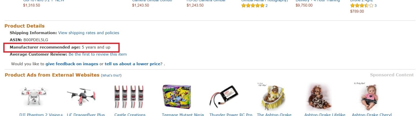 Oh, but at least the manufacturer has the good common sense to recommend it be used only by folks older than five. Five! No, I’m not shitting you, look, I took a screenshot: