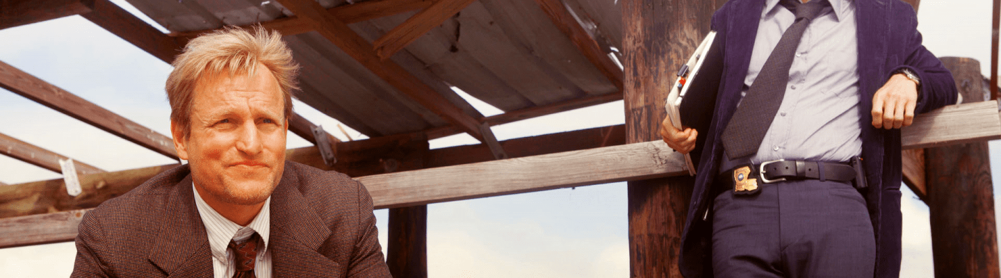 I have this vision; it’s 9:15am on a Wednesday; Matthew McConaughey and Woody Harrelson are still drunk; hunched over in an aisle at Sears; arguing over which lawnmower replacement blade to buy; and it’s the most riveting scene I see all year.