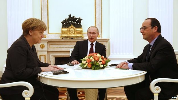 “Well Angela, François, I find your proposal rather intriguing. Unfortunately, however, I think I’m just going to have to ask you both to go fuck yourself. Yes, please go fuck yourselves. Maybe I’ll take Kiev next week, maybe not. Who knows? Who cares? You’re fucked. Want a drink?”