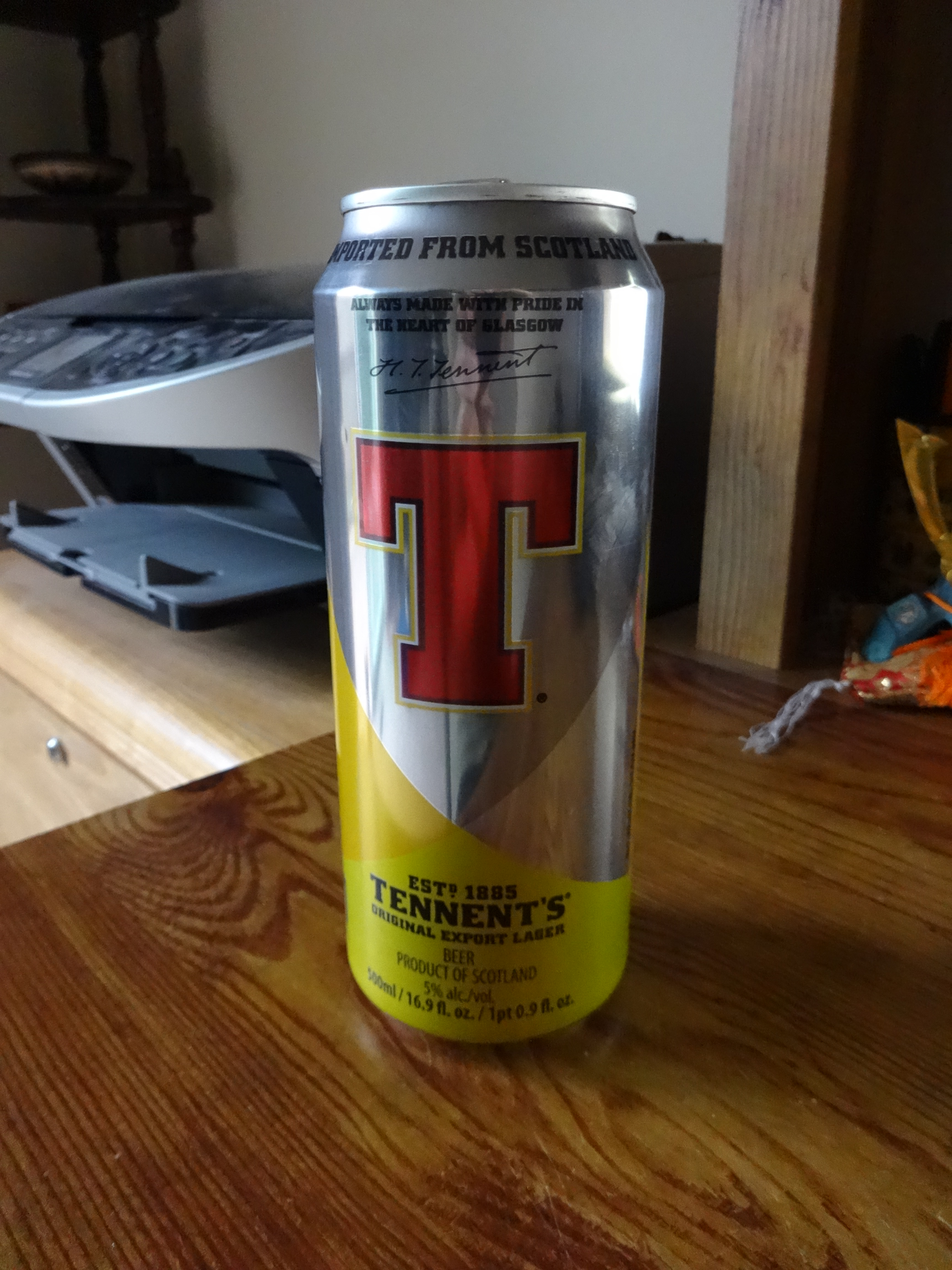 Anyways, another Scottish beer you can get in America is Tennent’s. Which, I think, is still Scotland’s best selling beer, but is a light lager. Think Bud or Heineken.