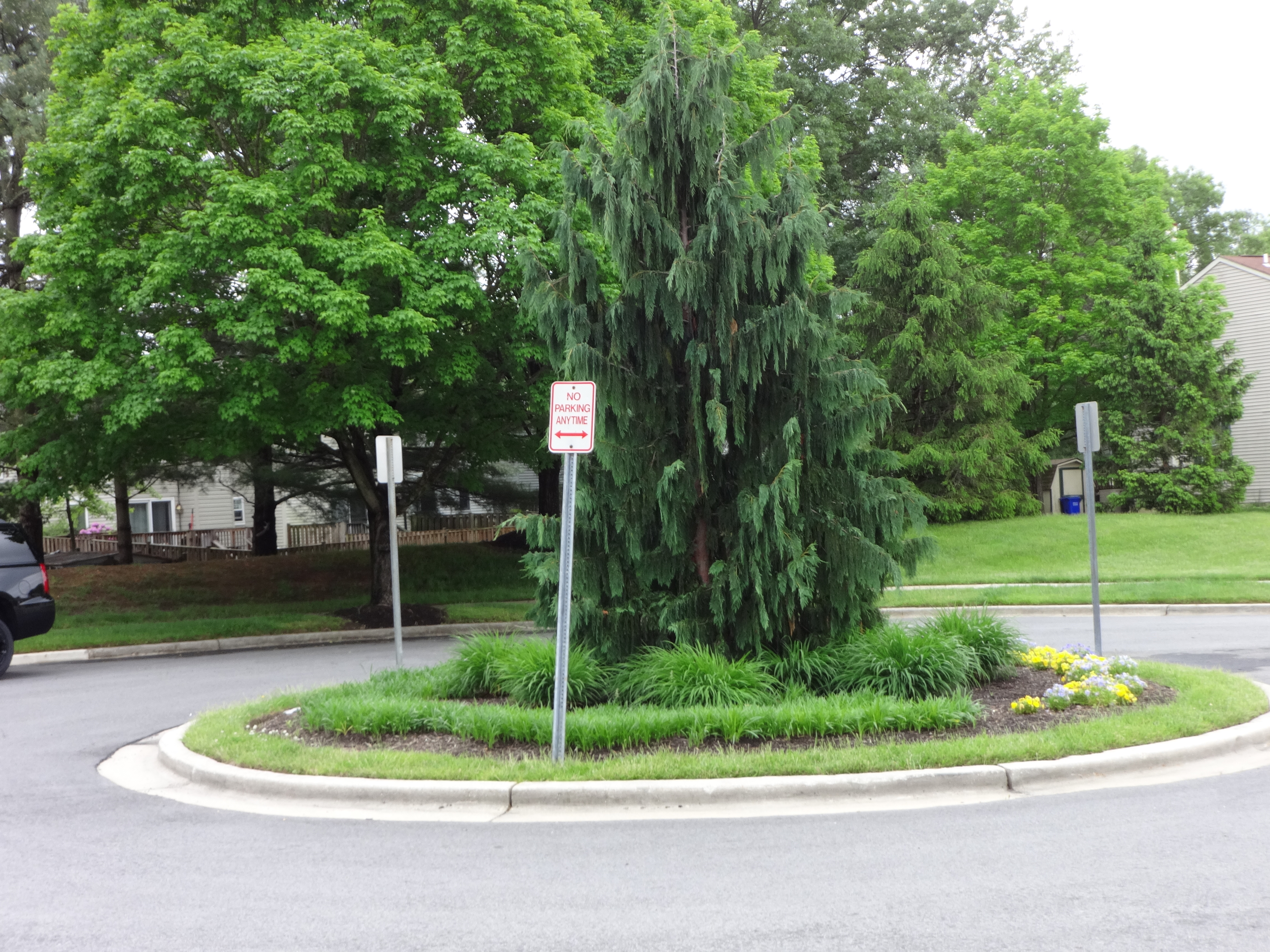 1) Now our cool little tree and flower circle has been surrounded by a trio of no parking signs
